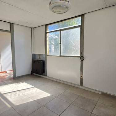 La casa, de 39,14 m2, cuenta con un dormitorio, hall frío, living comedor, cocina y baño. Además, posee un garage cerrado de 25,8 m2.