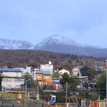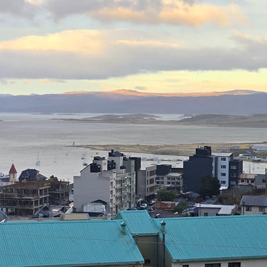 Vista frente a las montañas, vista contrafrente al Canal Beagle.