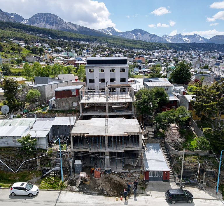 El desarrollo contempla la construcción de 4 módulos de vivienda, de los cuales dos ya tienen su estructura completa, con cerramiento exterior y perfiles colocados en su interior.