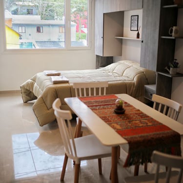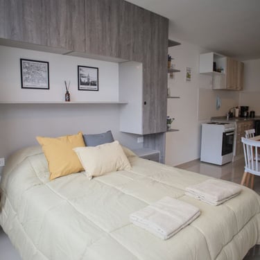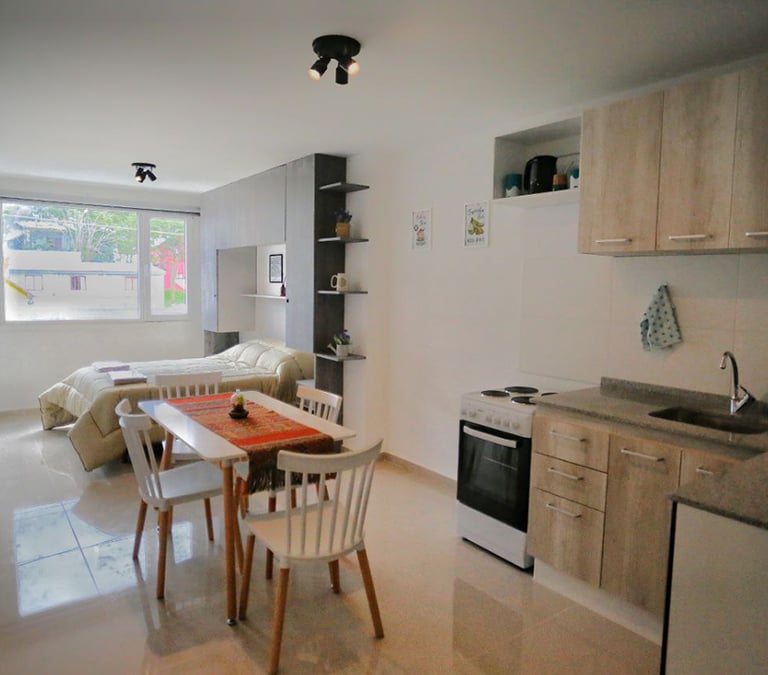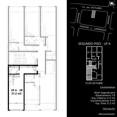 Departamento monoambiente en segundo piso, con baño completo y un total de 31,20 m2. Cuenta con una buena distribución del ambiente para aprovechar los espacios.