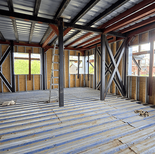 Situado sobre Las Violetas (a metros de Av. Alem), la obra avanza con paso firme, dando forma a un proyecto pensado para personas que quieran invertir en bienes raíces.